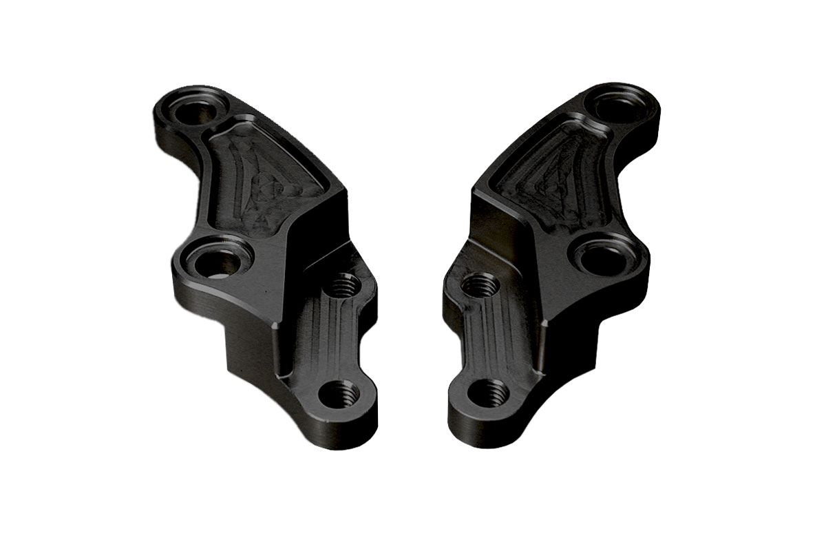 1 Paar Bremszangen Adapter zum Anbau der BREMBO Zangen mit 65 mm Lochabstand an alle SHOWA Gabeln mit 40mm Aufnahme und 310er oder 320er Scheibengröße.