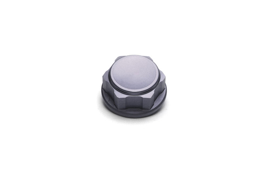 Beautifully shaped, closed steering head nut made of aluminium.