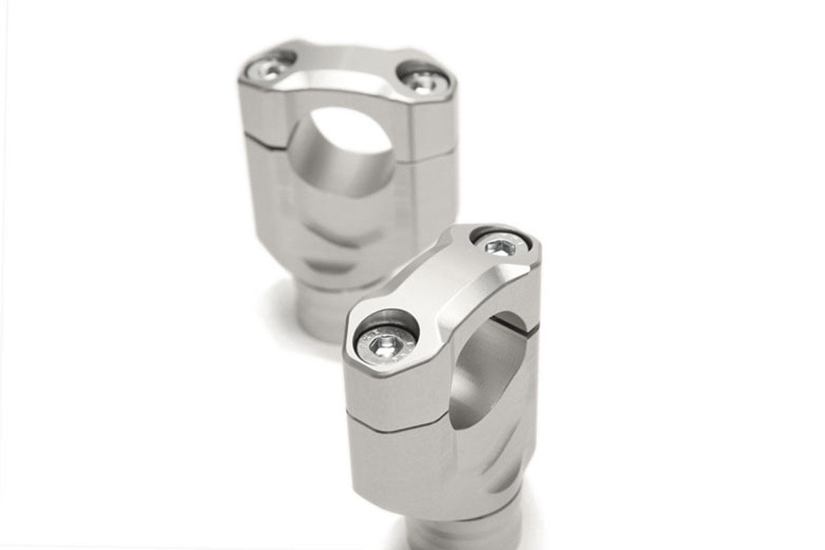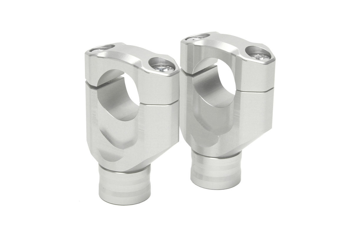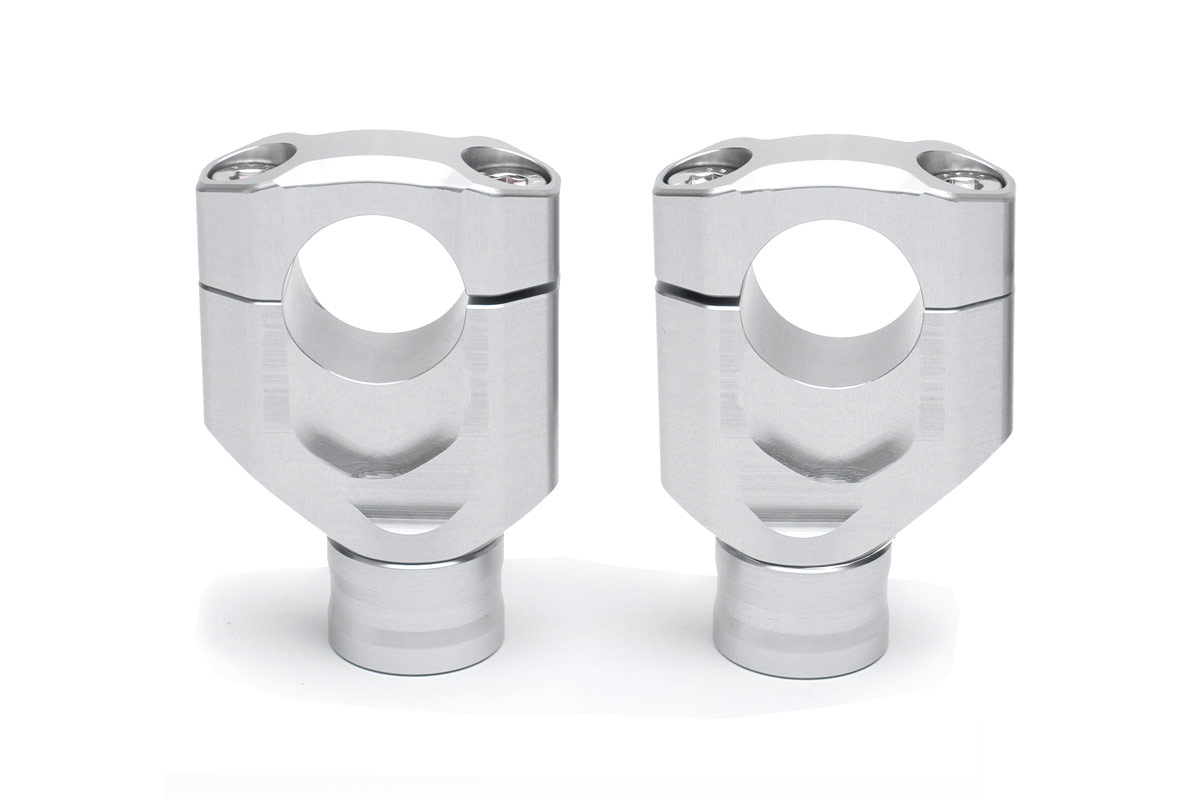 The fully cnc machined clamping sets have a height of 30 mm (upper side of triple clamp to lower side of handlebar). By using the avaiable distance bushings almost all needed heights are possible.