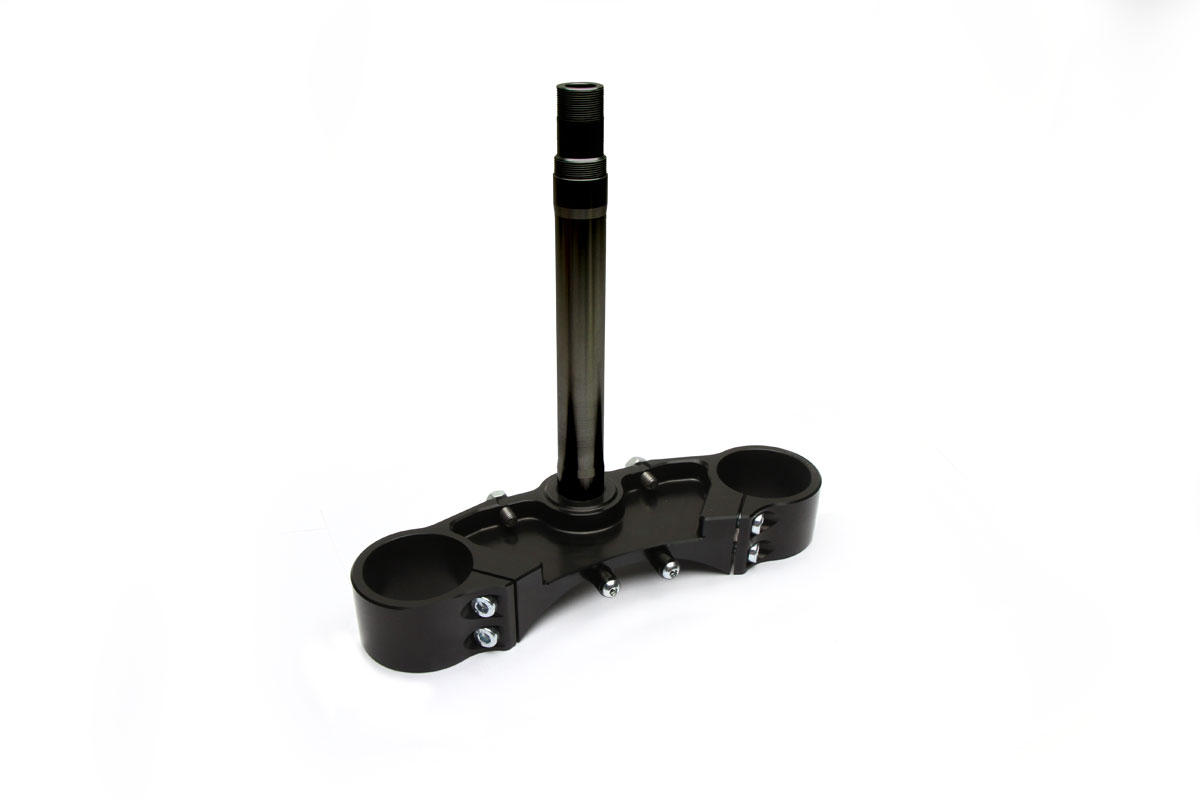 Fits without any changes to the bike. Made to use with e.g. the stock 53mm SHOWA or a 56mm OEHLINS front fork set. 60mm high with 3 bolts each side. 40mm height on request.