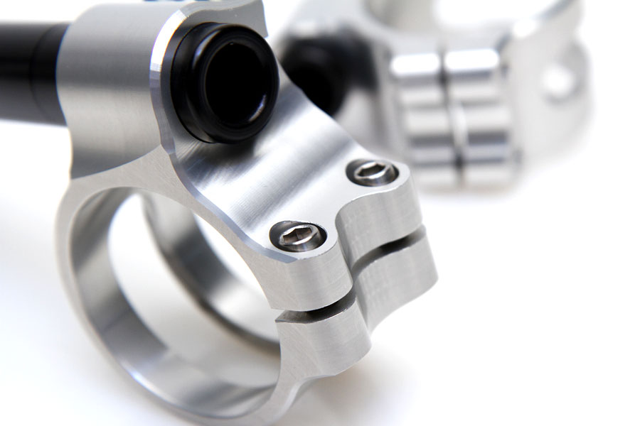 For race use developed lightweight clip-ons. Consistent lightweight design and contruction. Handlebar tube position as close as possible to the fork tube for a balanced handling of the bike. High grade anodised surface gives a premium look and protects for mechanical treatment. Fully cnc machined from high grade aircraft aluminium (7075 T6) .