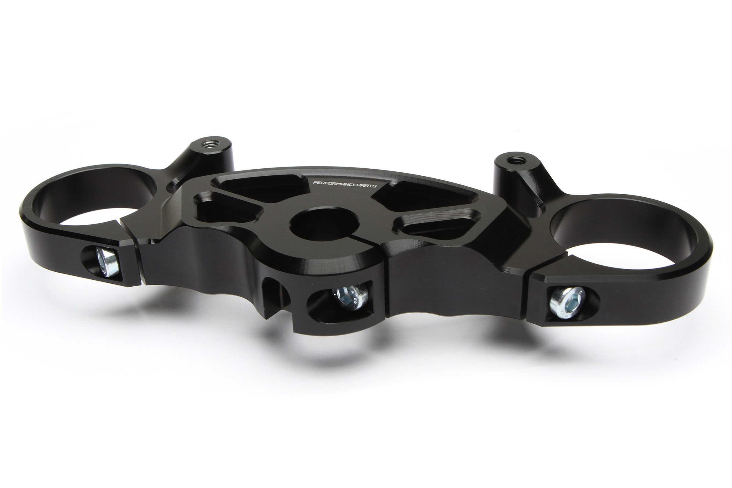 Fully CNC machined from solid aircraft-grade billet aluminum, our Performanceparts triple clamp is stronger than the stock Ducati unit, but light in weight as well.