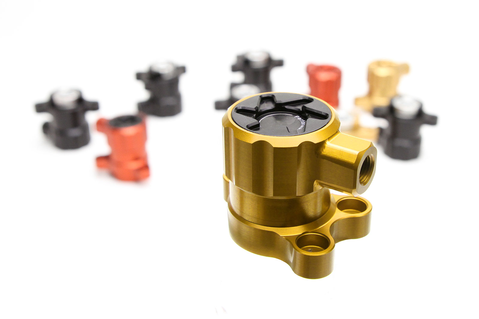 - Zylinderdeckel in gold, schwarz titan oder rot eloxiert