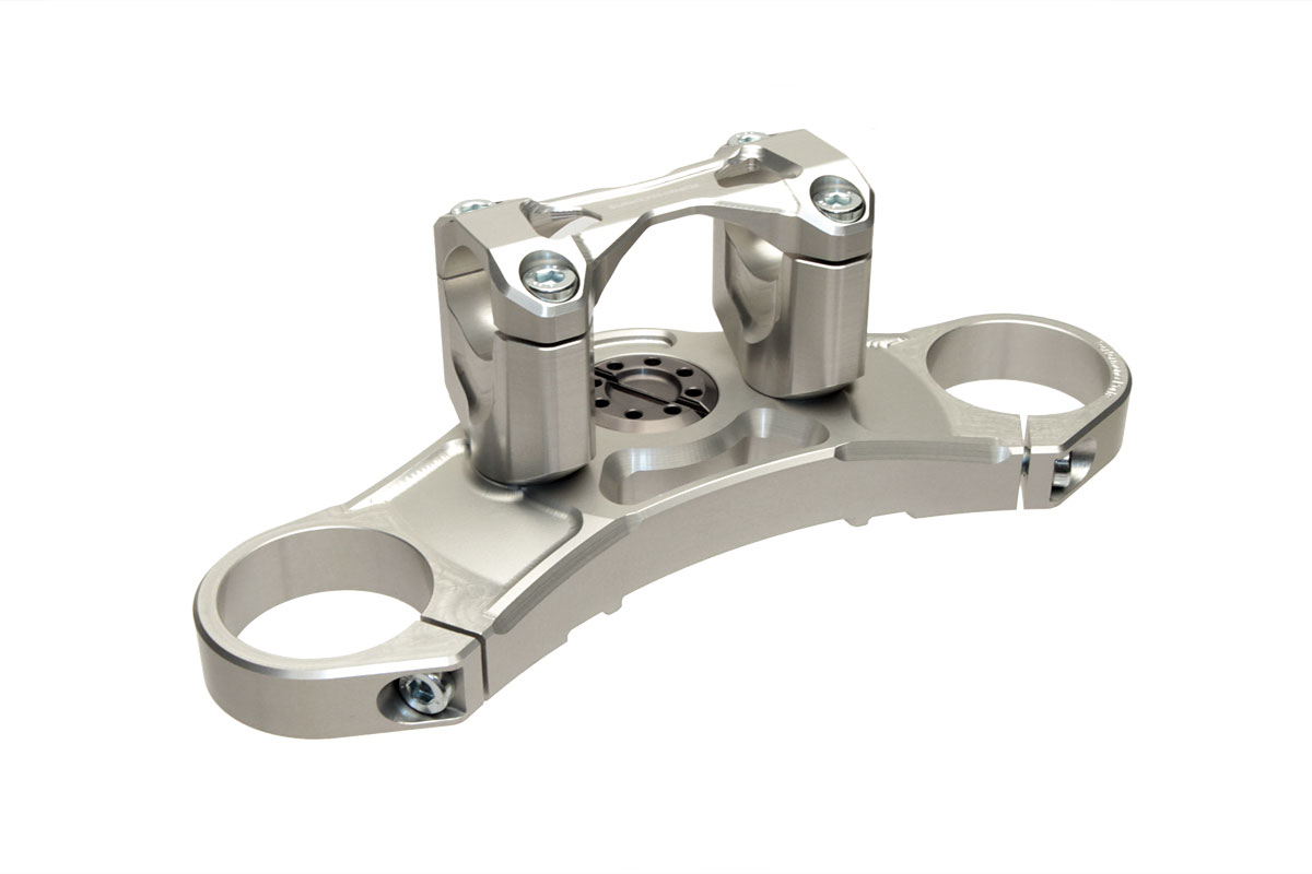 Die optisch filigrane mit 1-fach Klemmung und Lenkerböcken gefertigte Gabelbrücke ist die ideale Basis für einen einzigartigen Umbau der Ducati Monster.