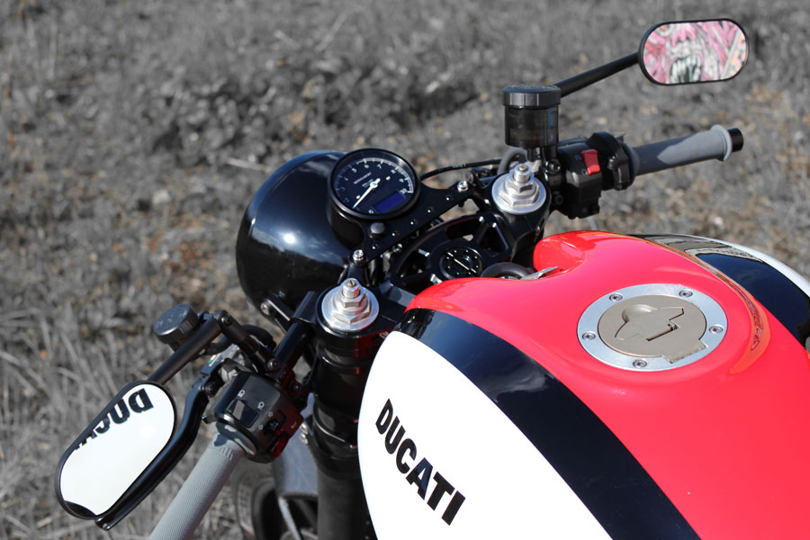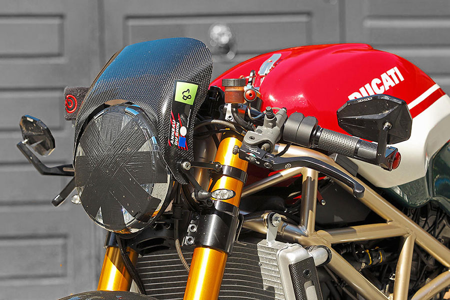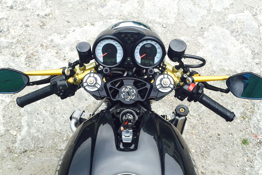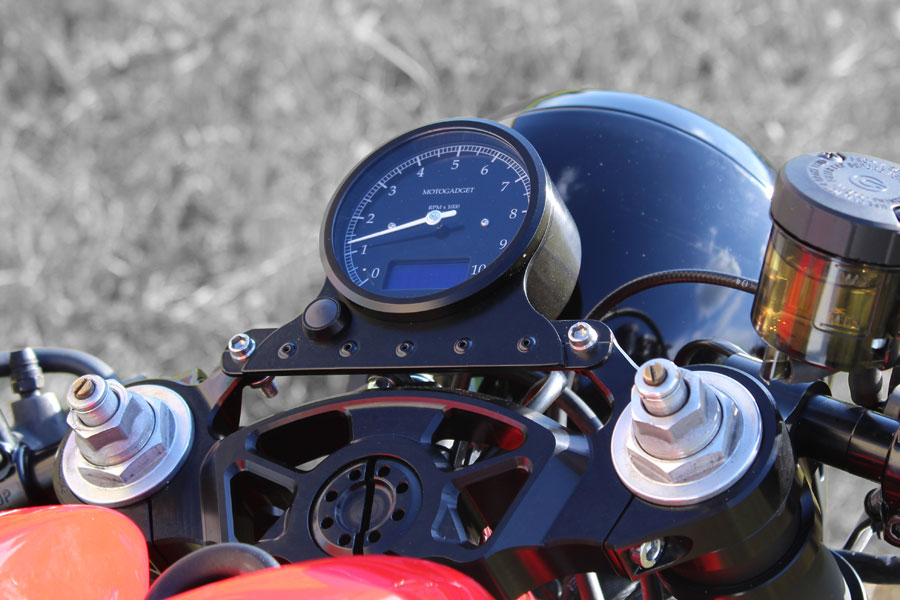 Aus dem Vollen CNC gefäste, obere Gabelbrücke Ducati Monster S2, S2R, S4, S4R und S2R 1000 mit Aufnahmen für das original Cockpit.