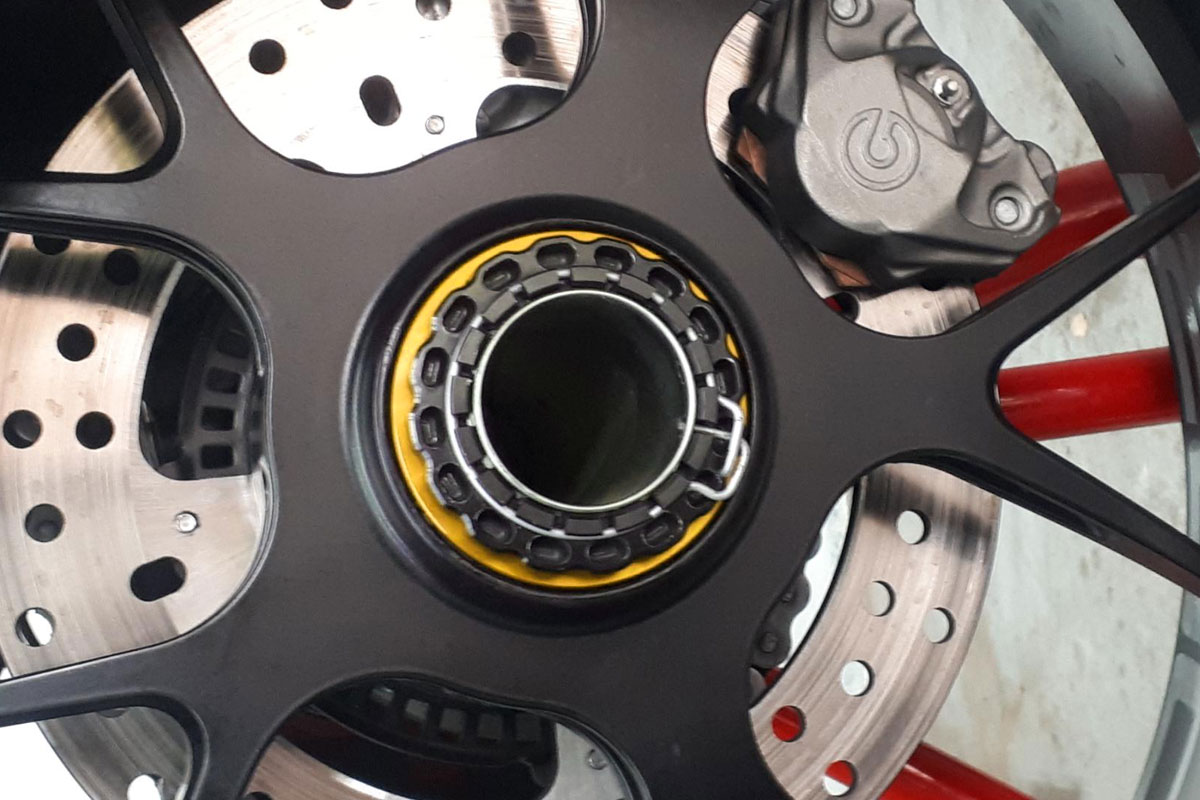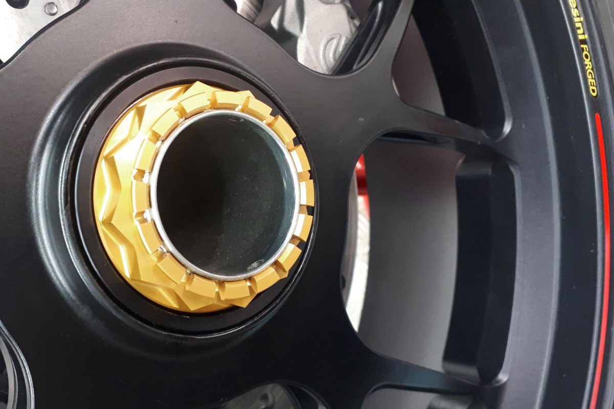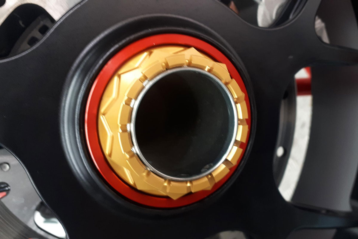Kleines aber sehr feines technisches Detail und optische Highlight. Der Konus wird unter der Zentralmutter des Hinterrades verbaut.