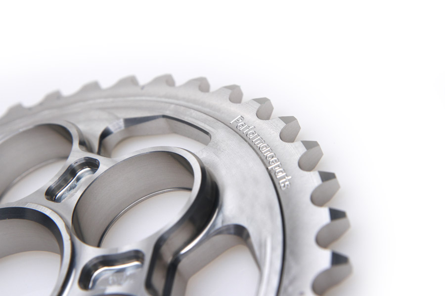 Die Kettenräder weisen eine leichte Anlaufkante an der nach innen zeigenden Seite der Ruckdämpferaufnahmen auf, um ein Herauswandern der Ruckdämpfer zu vermeiden.