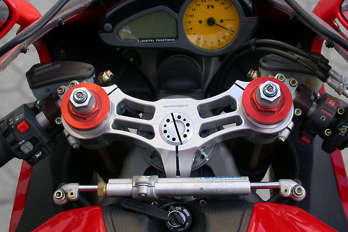 Auffällige und designstarke 3D gefräste, durchbrochene obere Gabelbrücke für MV Agusta F4 Modelle 1998 - 2009.