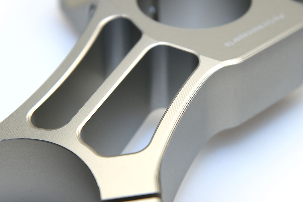Das auffällige Design und ein hochwertiges Finish dieser Performanceparts Gabelbrücke verleihen der MV ein indivudelles Aussehen. Das offen gestaltete Design erlaubt den freien Blick auf den Lenkkopf und verringert das Gewicht der Brücke auf ein Minimum ohne die Festigkeit zu beeinflussen. Das edle, auf das Gesamtbild der F4 angepasstes Design und die volle Funktionalität mit Aufnahme für den Lenkungsdämpfer machen diese Gabelbrücke zu einem Hingucker auf jeder MV Agusta. Die originale Steuerkopfmutter kann weiter verwendet werden. Aufwendig aus hochfestem Luftfahrt Aluminium (7075) 3D gefertigt und schwarz, titanfarben oder silber eloxiert.