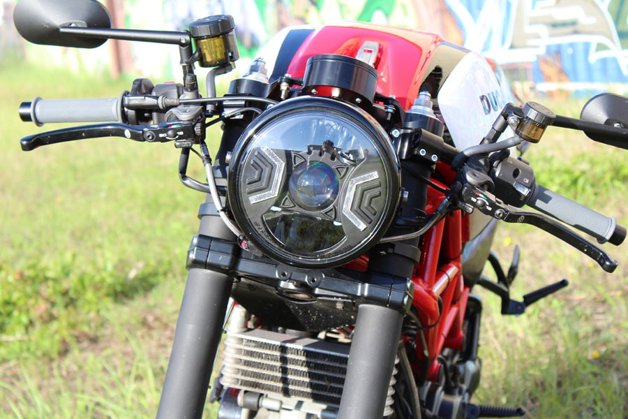 Für die Ducati Monster haben wir einen Stummellenker in konsequenter Leichtbauweise entwickelt. Das dicht am Gabelholm positionierte Lenkrohr ermöglicht eine ausgeglichene Balance des Fahrzeugs. Die hochwertige, eloxierte Oberfläche verleiht dem Lenker eine ansprechende Optik und schützt ihn wirksam vor Umwelt- und mechanischen Einflüssen.